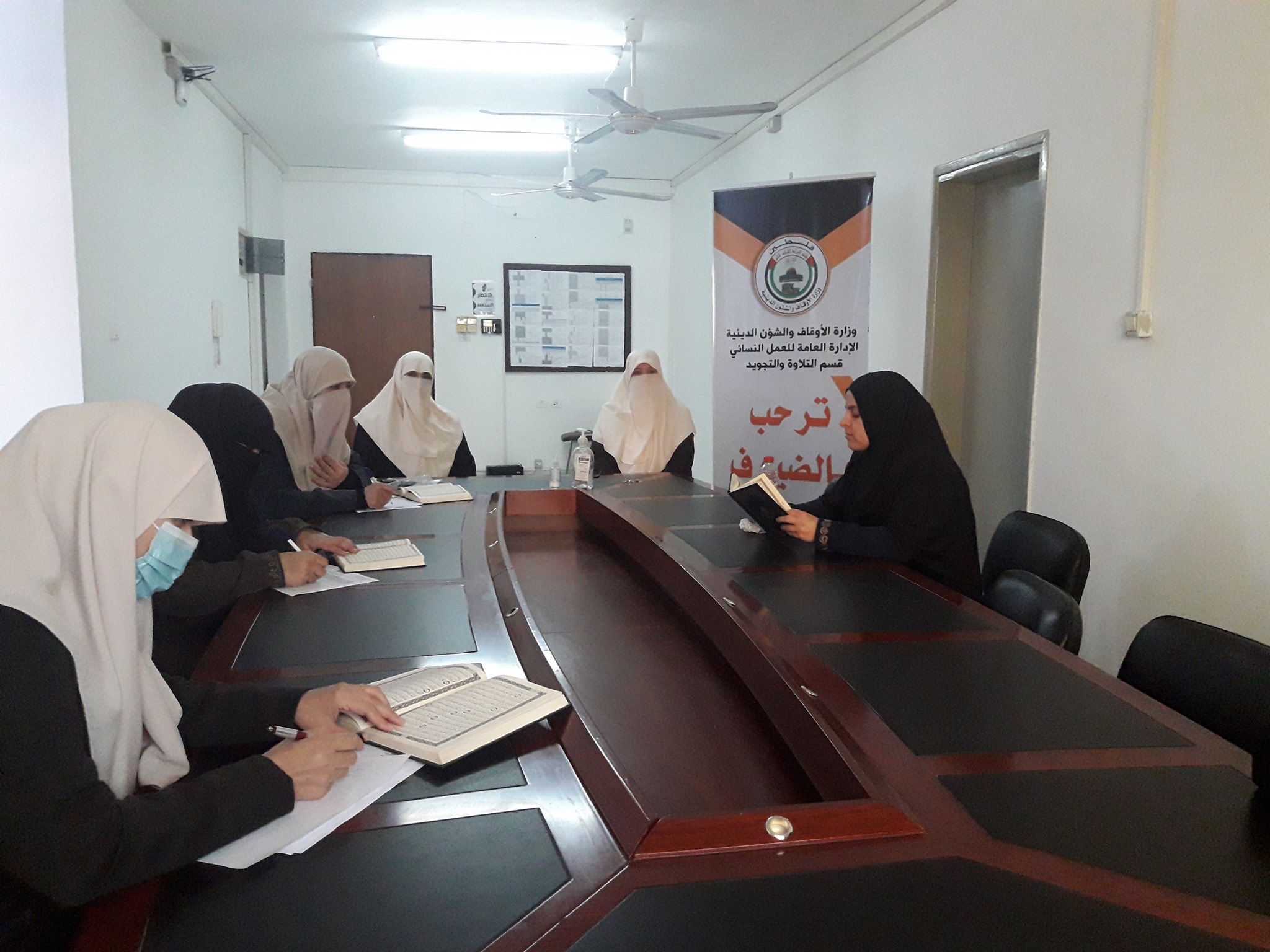 عقد قسم التلاوة والتجويد بالإدارة العامة للعمل النسائي التابع لوزارة الأوقاف لجان اختبارات لإجازة ( 32) قارئة سند من مختلف مراكز القطاع, وفقاً لإجراءات السلامة والوقاية من وباء كورونا.