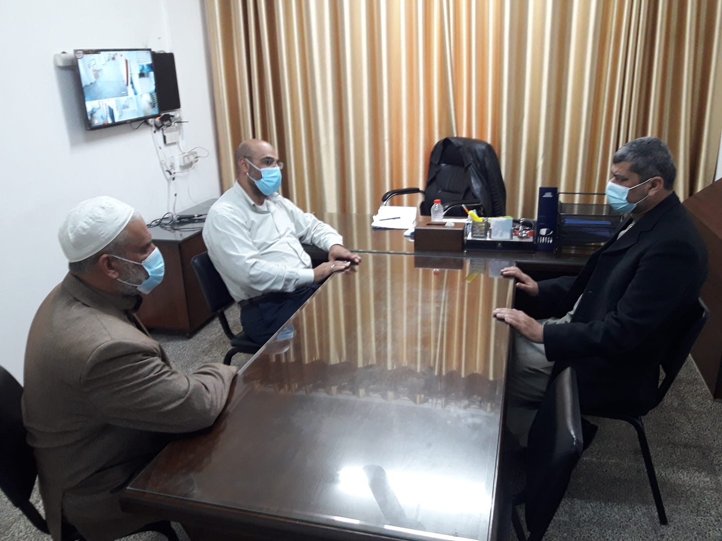 بحث مدير مديرية أوقاف غزة د. محمد سالم مع مدير دائرة الصيانة بالوزارة أ. مؤمن المغاري آليات العمل المتعلقة بصيانة المساجد ومرافق الأوقاف المختلفة وسبل تطويرها.