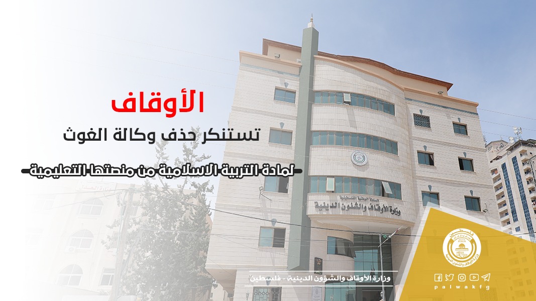 استنكرت وزارة الأوقاف والشؤون الدينية بغزة إقدام وكالة الغوث وتشغيل اللاجئين (الأونروا ) على حذف عدة مواد تعليمية من منصتها التعليمية واعتبارها مواد غير أساسية ضمن نظامها في التعليم عن بُعد وأهمها مادة التربية الإسلامية.