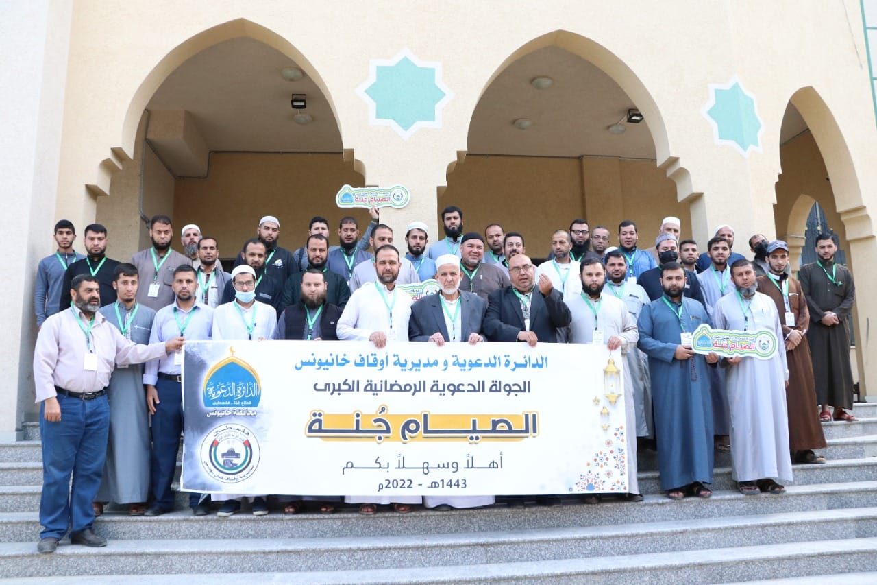 نفذ قسم الدعوة و الإرشاد بمديرية أوقاف خان يونس وبالتعاون مع الدائرة الدعوية بالمحافظة, جولة دعوية كبرى بعنوان "الصيام جنة", استهدفت المحلات التجارية و المستشفيات والنظارات ومراكز الإصلاح والتأهيل, بهدف التذكير بفضل العشر الأواخر من شهر رمضان.