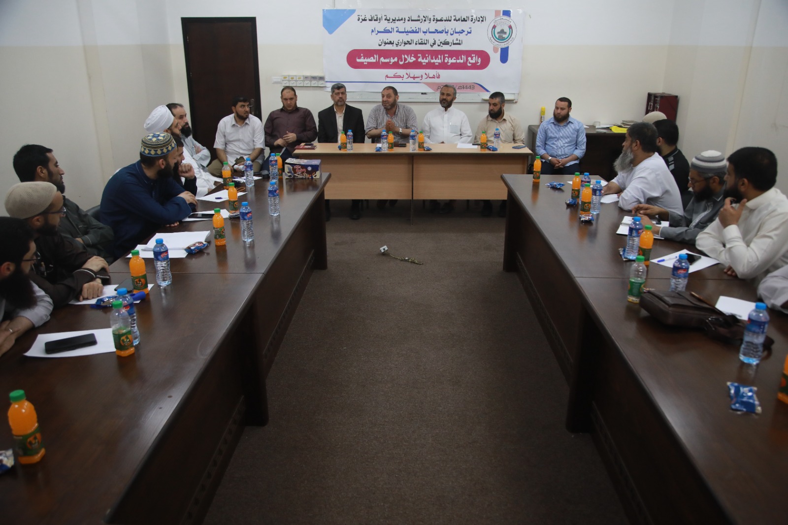 نفذت الإدارة العامة للدعوة والارشاد بوزارة الأوقاف والشؤون الدينية سلسلة لقاءات حوارية مع الفرق المتخصصة في الدعوة الميدانية، استعداداً لإطلاق الأنشطة الدعوية في موسم الصيف, بحضور مدير عام الدعوة والإرشاد أ. أمير أبو العمرين، ومدير عام المديريات أ. منذر الغماري، ومدير الدائرة الدعوة أ. يوسف أبو معيلق.