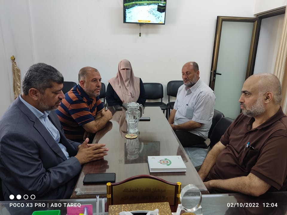 بحث مدير عام الإدارة العامة للقرآن الكريم بوزارة الأوقاف د. محمد سالم سبل التعاون المشترك مع مدير القرآن الكريم بالجامعة الإسلامية أ. محمد أبو اللبن وآليات تنفيذ دورات تدريبية لمدرسي الدورات القرآنية، بحضور مدير مشيخة المقارئ أ. محمد حمدونة، ومدير القرآن الكريم/اناث أ. مها الشوبكي، ورئيس قسم مراكز التحفيظ أ. توفيق حماد.