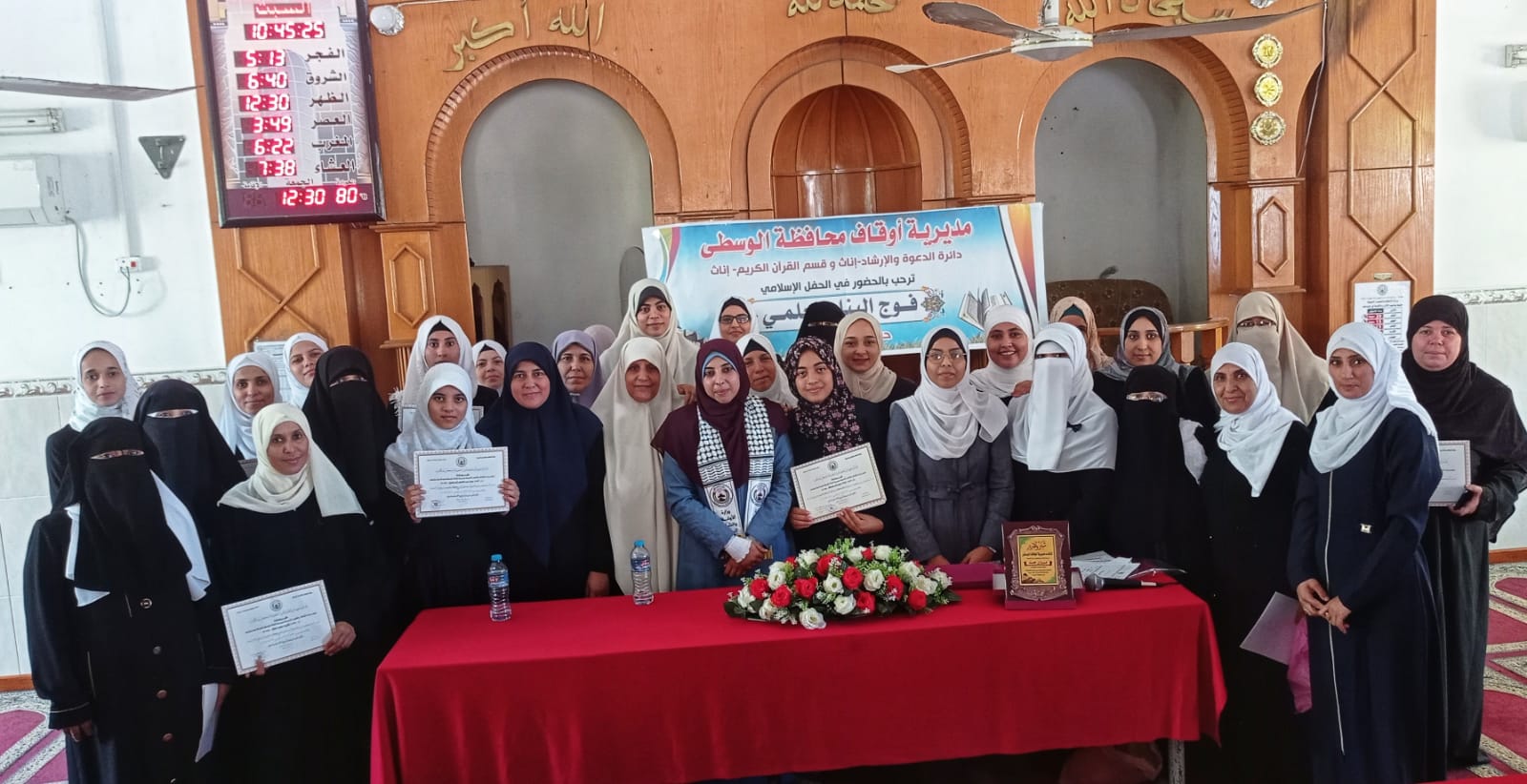 كرم قسم العمل النسائي بمديرية أوقاف الوسطى كوكبة من طالبات العلم المشاركات في المجالس العلمية والحافظات لكتاب الله تعالي، وذلك خلال حفل نظمه في مركز "مشروع العمر الشرعي" الذي يضم عدداً من مراكز مدينة المغراقة في المحافظة.