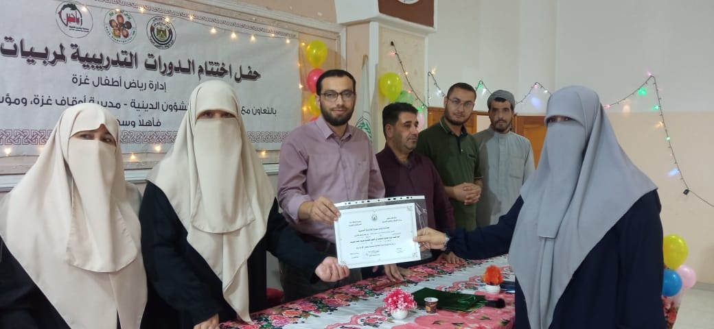 كرمت مديرية أوقاف غزة بالتعاون مع الجمعية الإسلامية ومؤسسة رياحين الخيرية المشاركات في الدورات التدريبية بعنوان "إدارة رياض الأطفال"، والتي تهدف إلى تأهيل مربيات الأطفال، بمشاركة رؤساء أٌقسام المديرية.