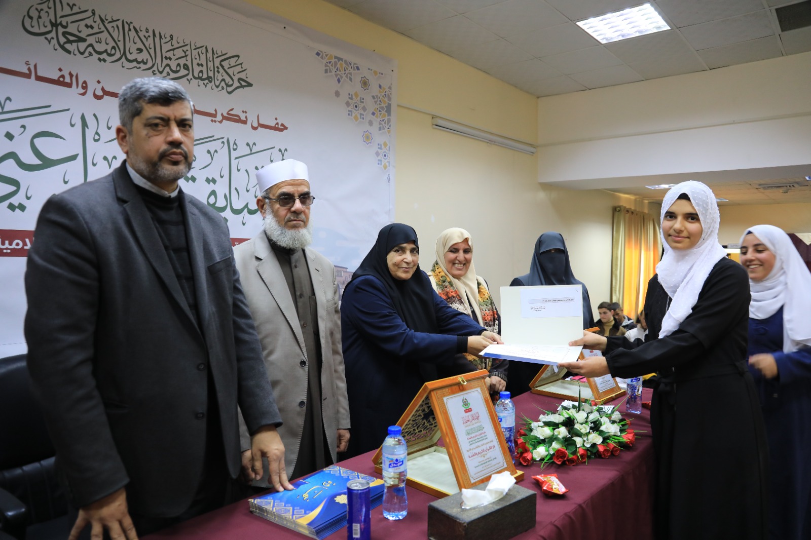 جاء ذلك خلال الحفل الذي نظمته الأوقاف لتكريم الفائزين في المسابقة التي عقدتها بالتعاون مع بالتعاون مع دار القرآن الكريم و جمعية الشابات المسلمات, بحضور رئيس مشيخة المقارئ الفلسطينية د. عبد الرحمن الجمل, ومدير عام الإدارة العامة للقرآن الكريم د. محمد سالم, ورئيس دائرة القرآن الكريم والسنة بالحركة أ. جميلة الشنطي, ومسؤولة ملف القرآن الكريم بجمعية الشابات المسلمات د. نهى صايمة.