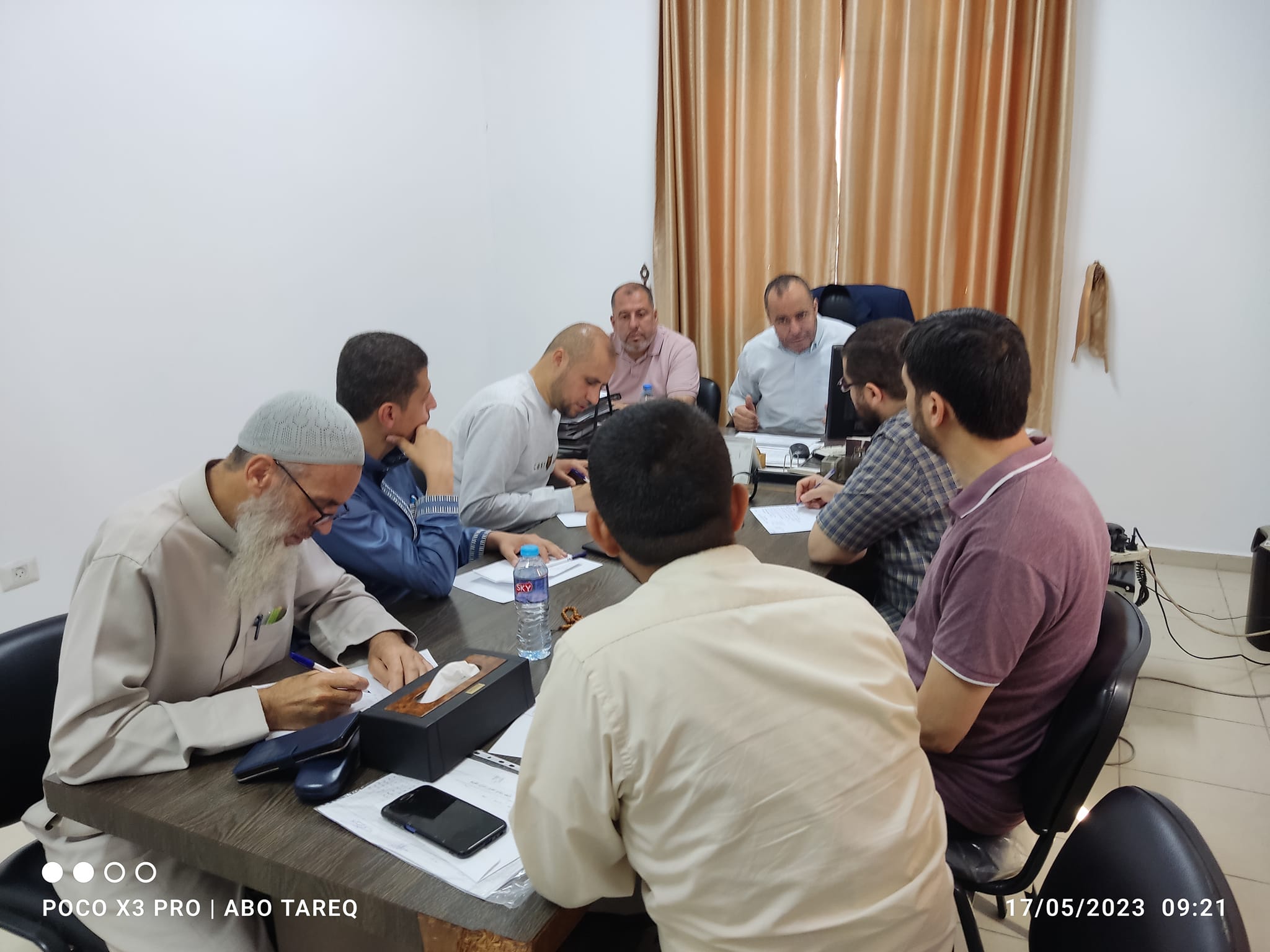 بحث مدير دائرة القرآن الكريم في وزارة الأوقاف والشؤون الدينية أ. حمد النجار مع رؤساء الشعب، مشروع سرد خمسة أجزاء من كتاب الله على جلسة واحدة، على مستوى المحافظات.